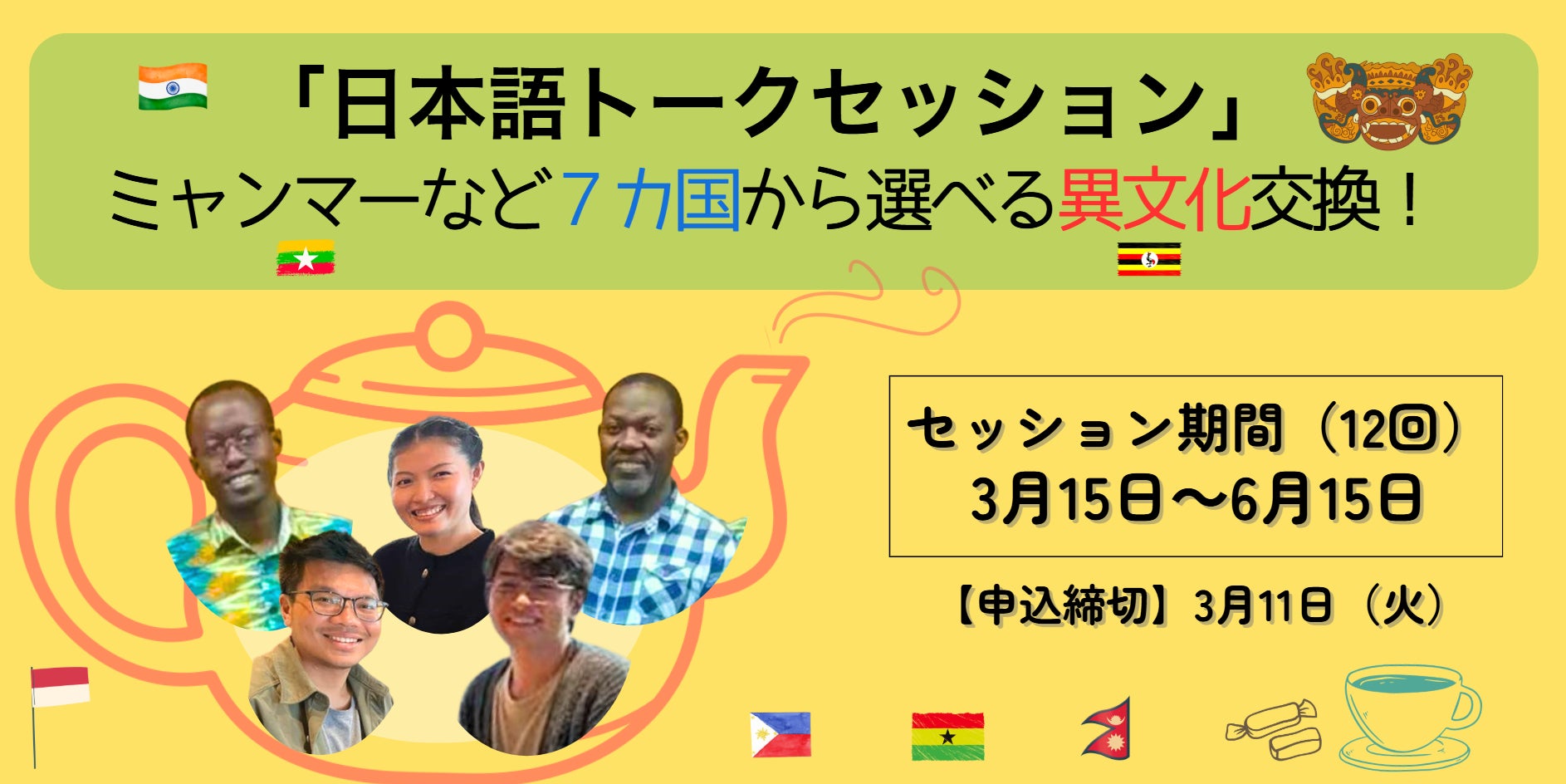【締切3/11】「日本語トークセッション」ミャンマーなど7カ国から選べる異文化交換!