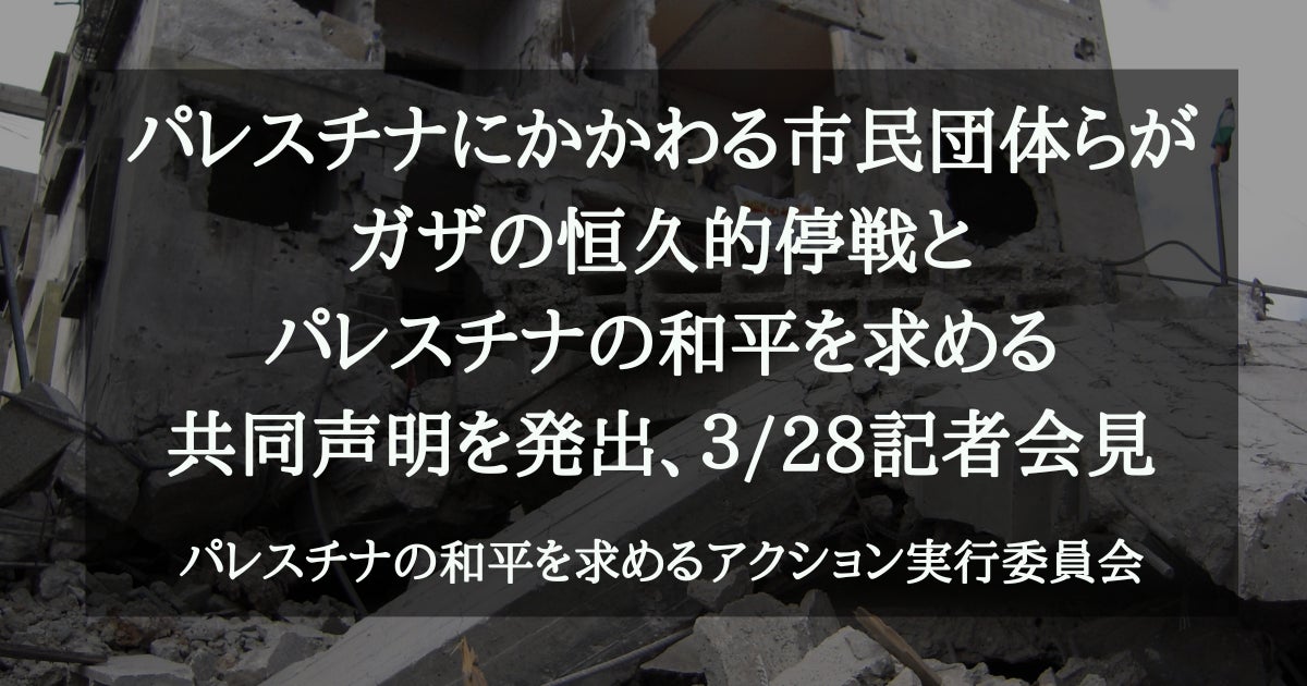 パレスチナにかかわる市民団体らがガザの恒久的停戦とパレスチナの和平を求める共同声明を発出、3/28記者会見を実施