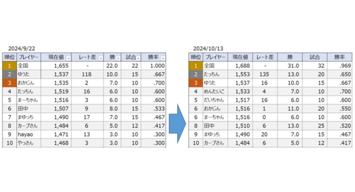 初代ファミスタの大阪(3/16)と東京(3/20)での対戦結果をランキングに反映