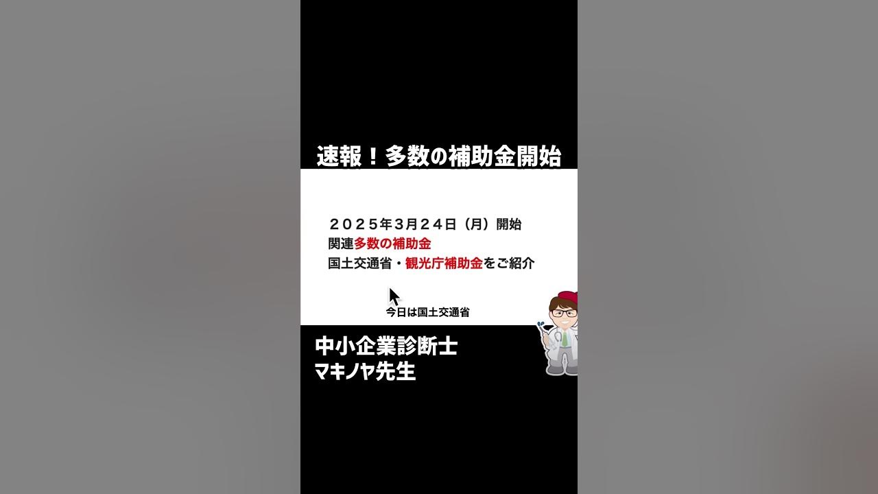 43. 【速報】3月24日開始・多数の中小企業向け補助金・観光・宿泊・インバウンド関連 ... - YouTube