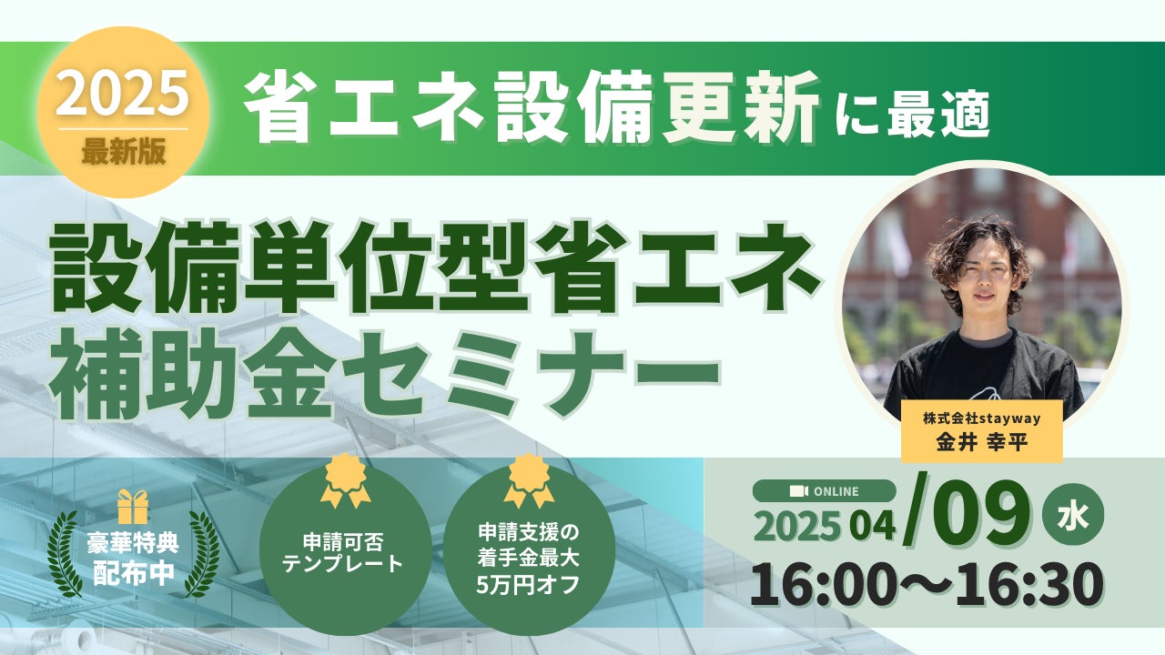 - 4/9(水)【省エネ設備更新に最適】 省エネ補助金・設備単位型セミナーを開催 - PR TIMES
