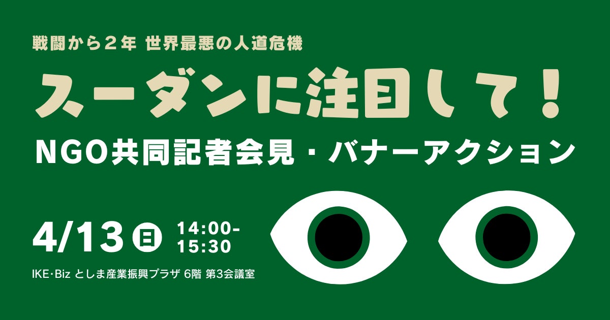【4/13(日)開催】「戦闘から2年 スーダンに注目して!」世界最悪の人道危機にあるスーダンで活動する国際協力NGOらが共同記者会見&バナーアクションを実施