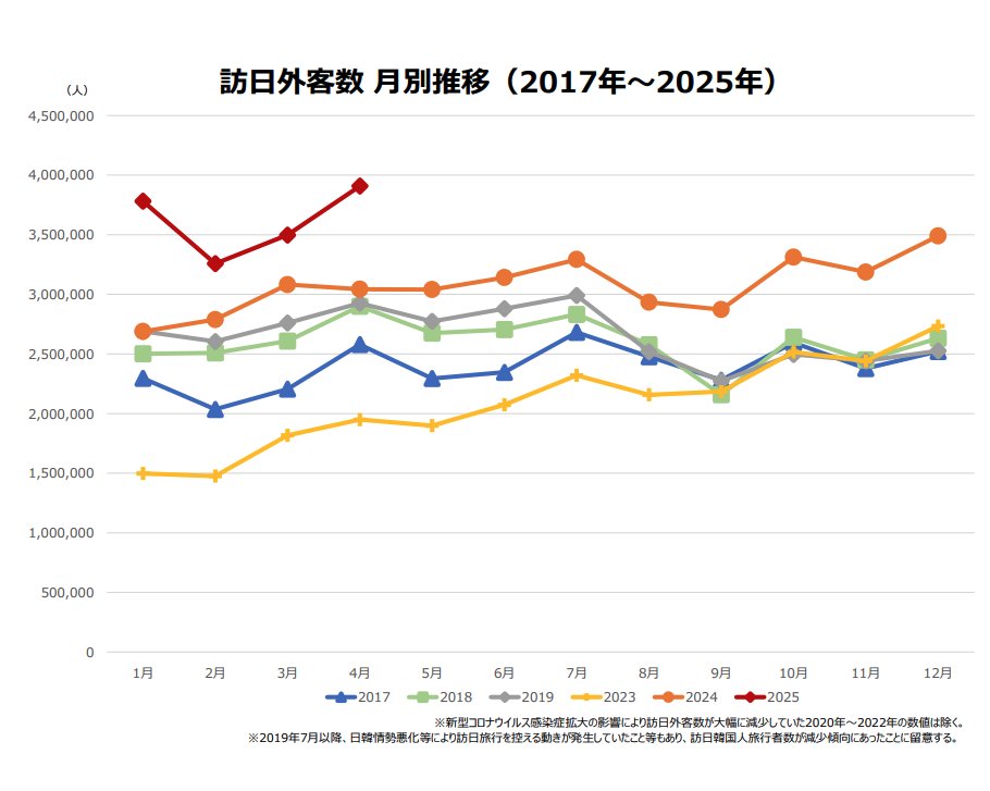 補助金ポータル「ほじょポン」 on X: "4月の訪日外国人旅行者数、なんと単月で過去最高だった …