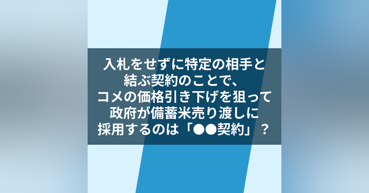 18. 入札をせずに特定の相手と結ぶ契約のことで、コメの価格引き下げを狙って、政府が備蓄米 ...