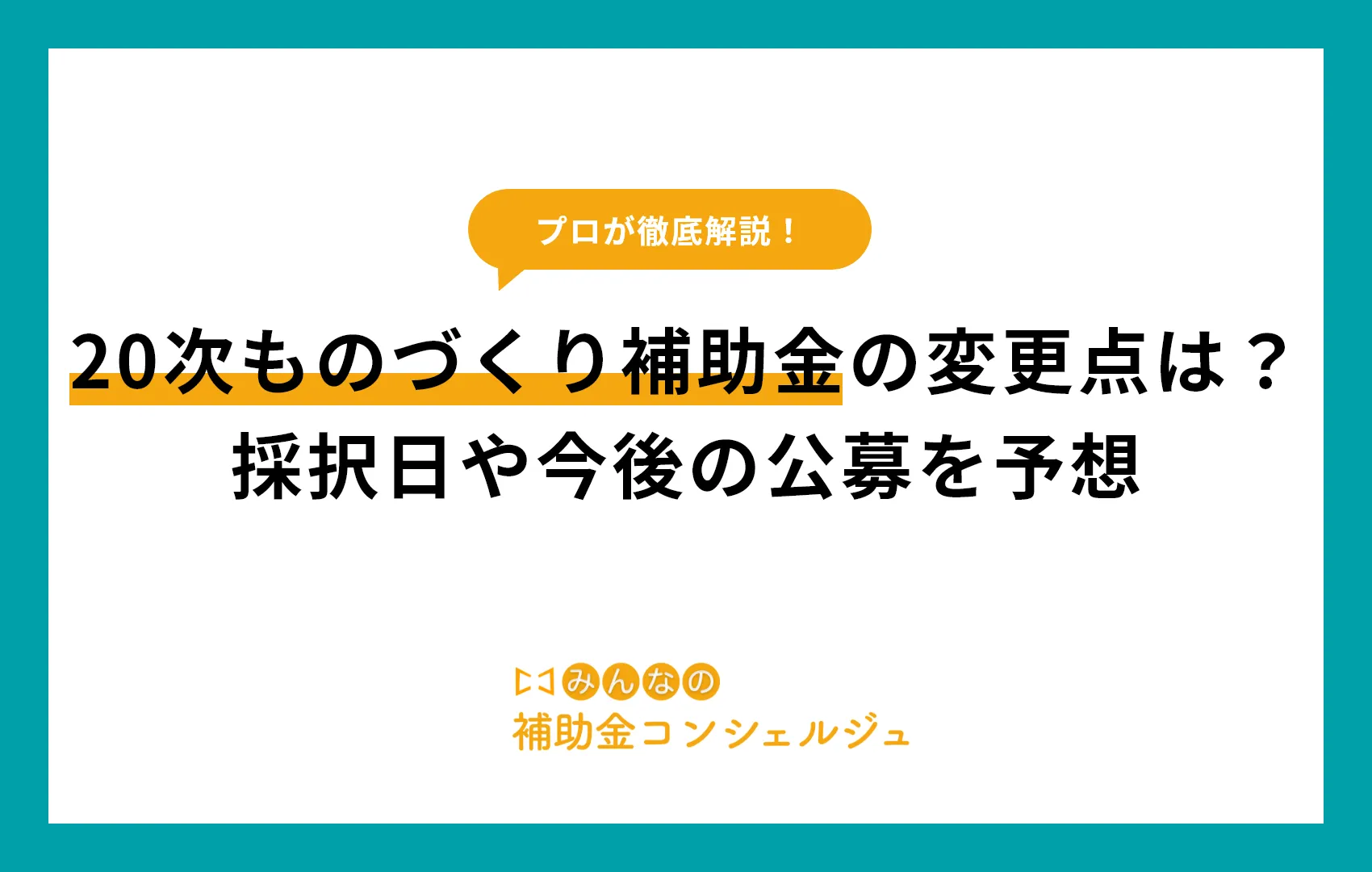 20次ものづくり補助金の公募要領が公開され、スケジュールが明らかになりました!20次ものづくり補助金では前回と変更点があります。変更点を分かりやすく …
