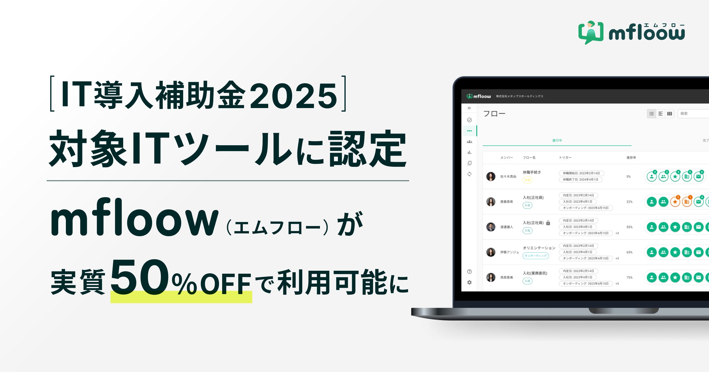 - 【IT導入補助金2025】mfloow(エムフロー)が対象ツールに認定 、実質50%OFFで利用可能に