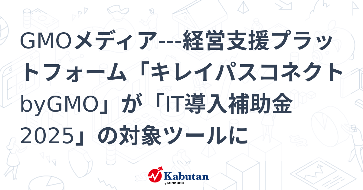 - GMOメディア---経営支援プラットフォーム「キレイパスコネクト byGMO」が「IT導入補助金2025 ...