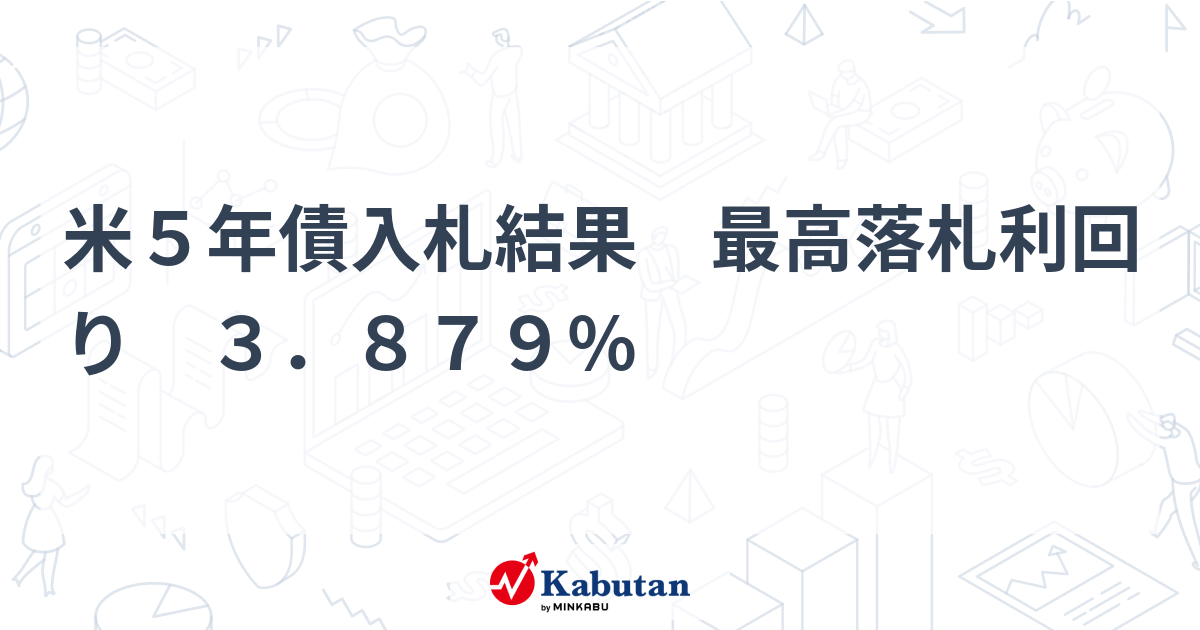 12. 米5年債入札結果 最高落札利回り 3.879% | 注目株