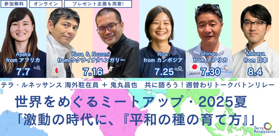 認定NPO法人テラ・ルネッサンスのプレスリリース(2025年6月30日 14時16分)【7/7~8/4】認定NPO法人テラ・ルネッサンス 海外駐在員+鬼丸昌也!
