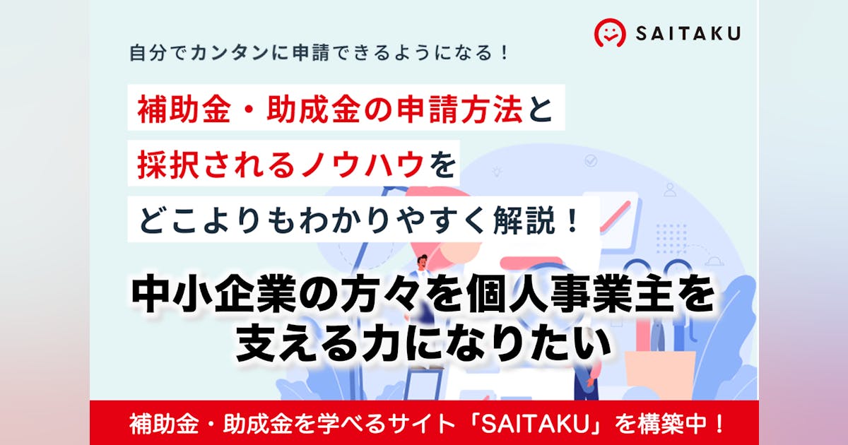 「補助金・助成金」を自ら申請できるようになるサイト「SAITAKU」を作りたい …