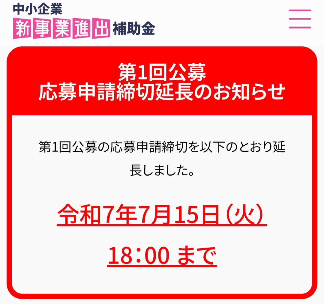 - 新事業進出補助金(第1回公募) 応募申請締切延長のお知らせ - ミラサポPlus