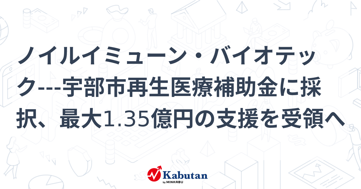 - ノイルイミューン・バイオテック---宇部市再生医療補助金に採択、最大1.35億円の支援を受領へ