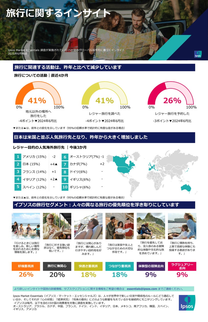 世界最大規模の世論調査会社イプソス株式会社(日本オフィス所在地:東京都港区、代表取締役:内田俊一)は、世界15か国の旅行に関する最新動向「Market …