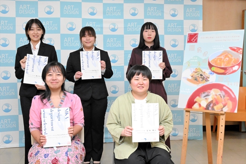 美術団体・二科会が主催する第109回二科展のデザイン部で入選した福島県郡山市の国際アート&デザイン大学校の冨田楓さん(21)=グラフィックデザインマスター科3年=ら5人をたたえる表彰式は25日、同