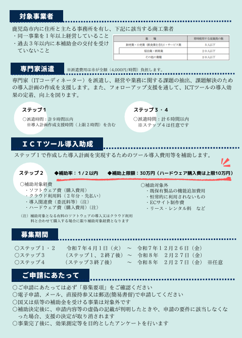 - 鹿児島市産業支援課より支援事業(中小企業デジタル広告支援事業補助金/小規模事業者ICT ...