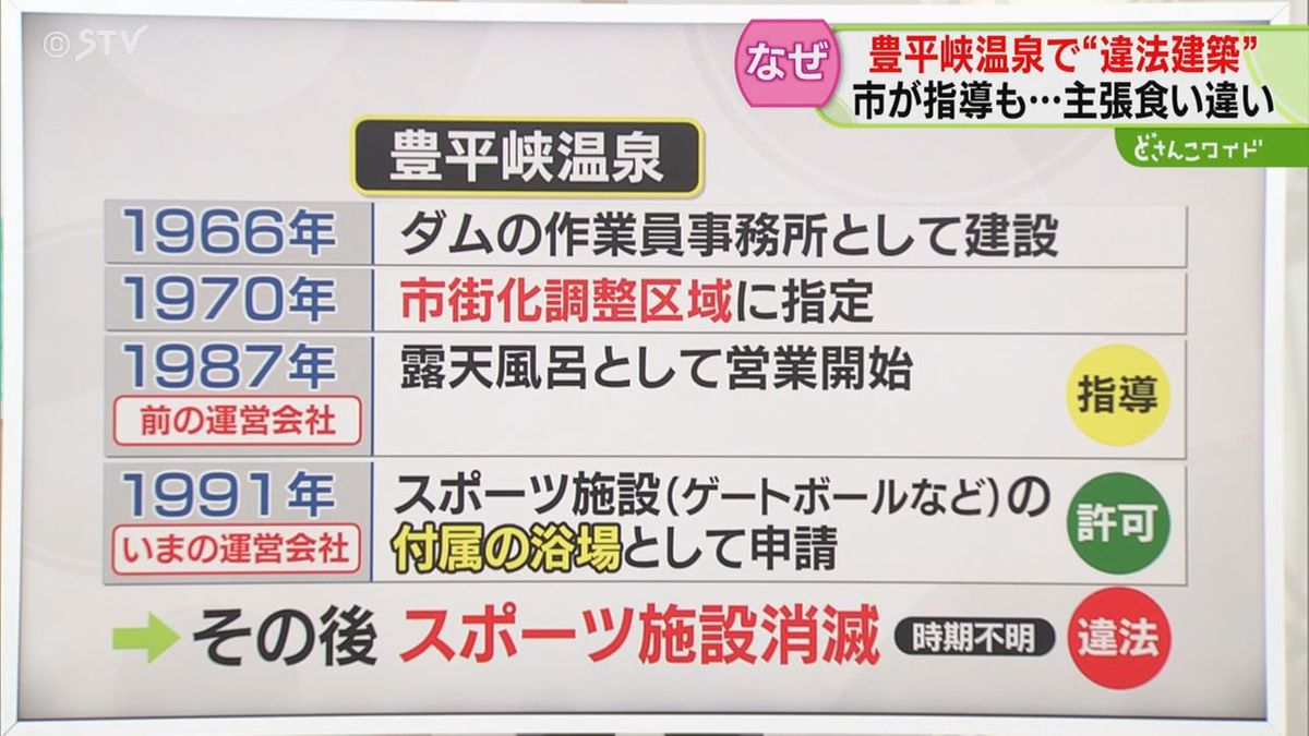 - 違法建築判明の豊平峡温泉 市と施設で主張食い違い ポイントは“スポーツ施設の有無” 札幌