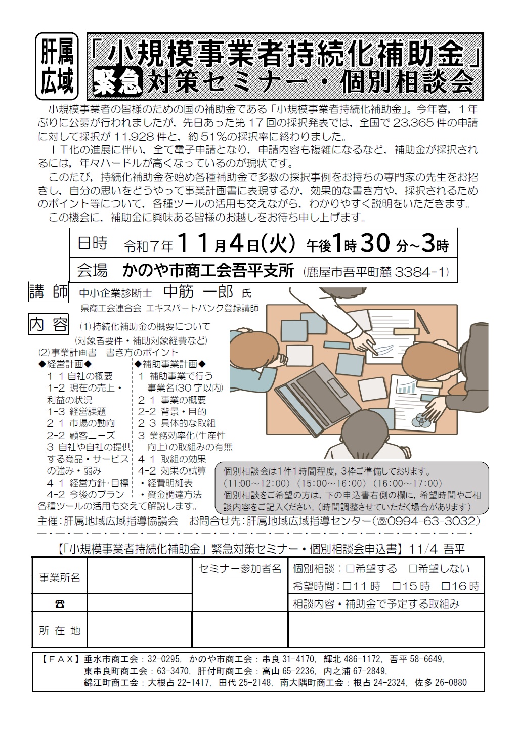 【広域】11/4小規模事業者持続化補助金 緊急対策セミナー・個別相談会 開催のお知らせ – グーペ