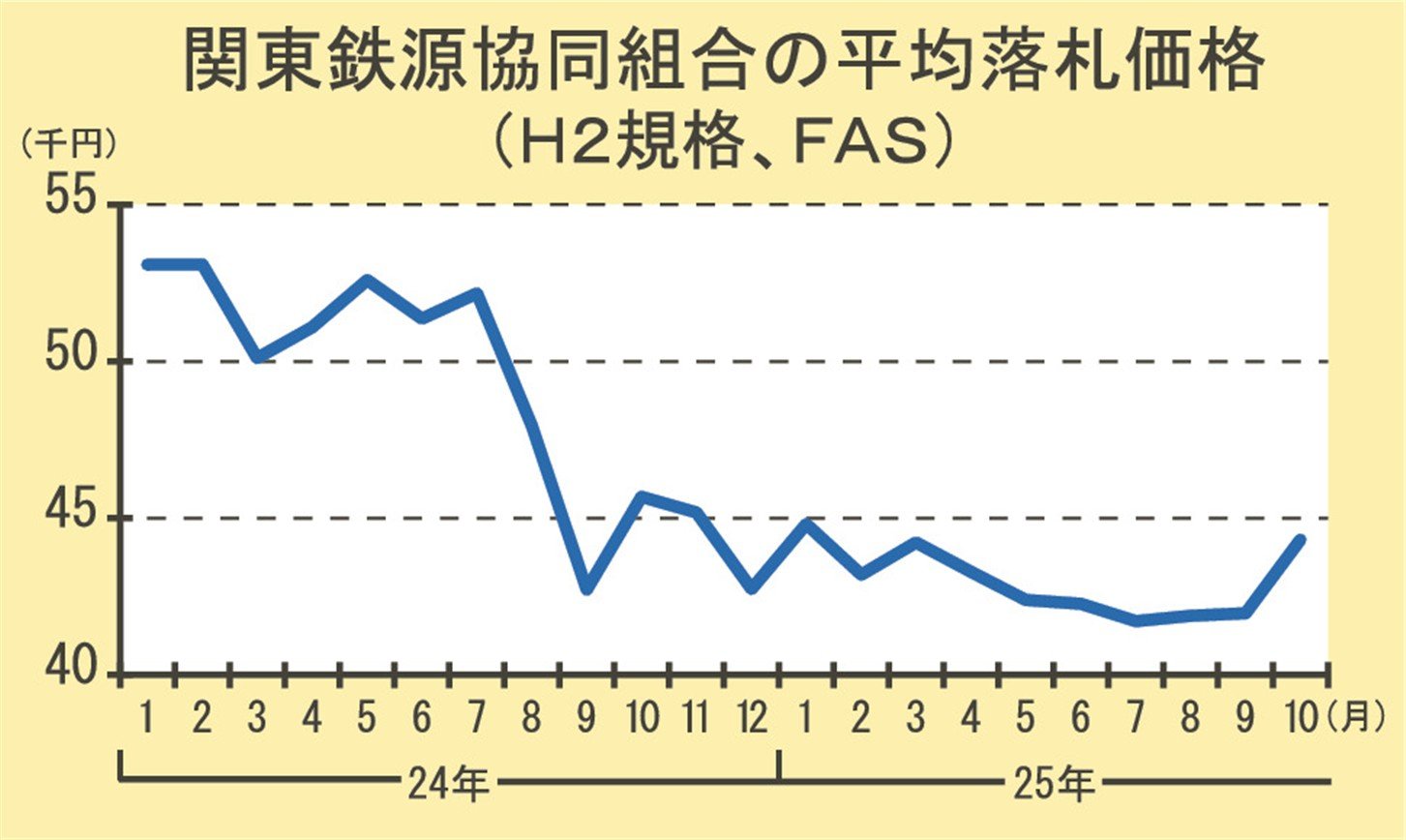 - 関東の鉄スクラップ輸出入札/9カ月ぶり高値、4万4316円で落札/前月比2346円高