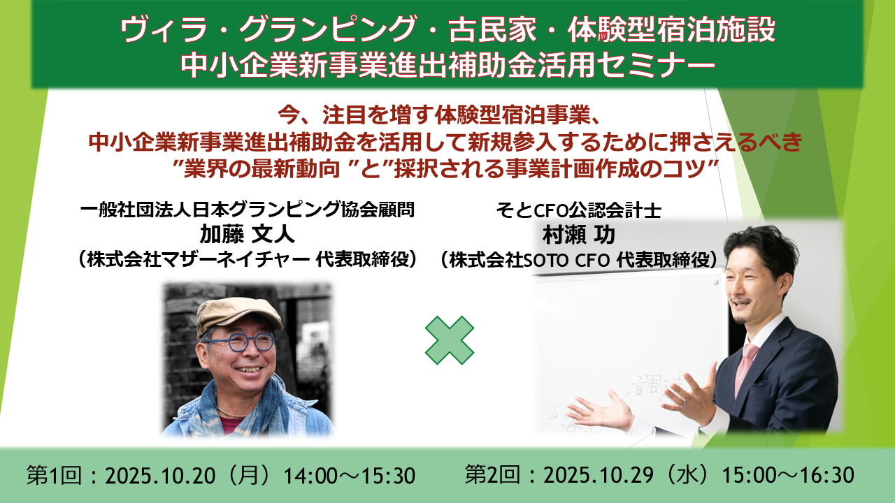 - 「ヴィラ」「グランピング」「古民家」体験型宿泊施設への新規参入を検討する事業者向け