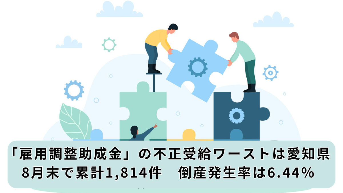 - 「雇用調整助成金」の不正受給ワーストは愛知県 8月末で累計1,814件 倒産発生率は6.44%