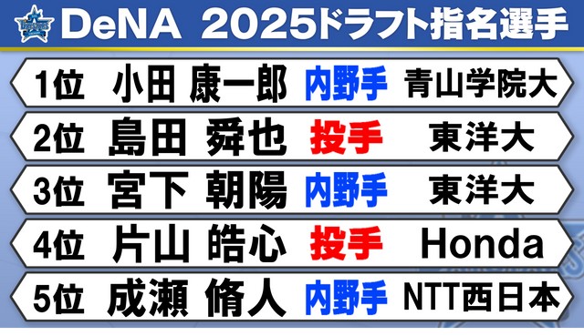 - 【ドラフト会議】DeNAは12球団最少の6選手指名 佐々木麟太郎の入札も 1位は侍ジャパン経験の ...