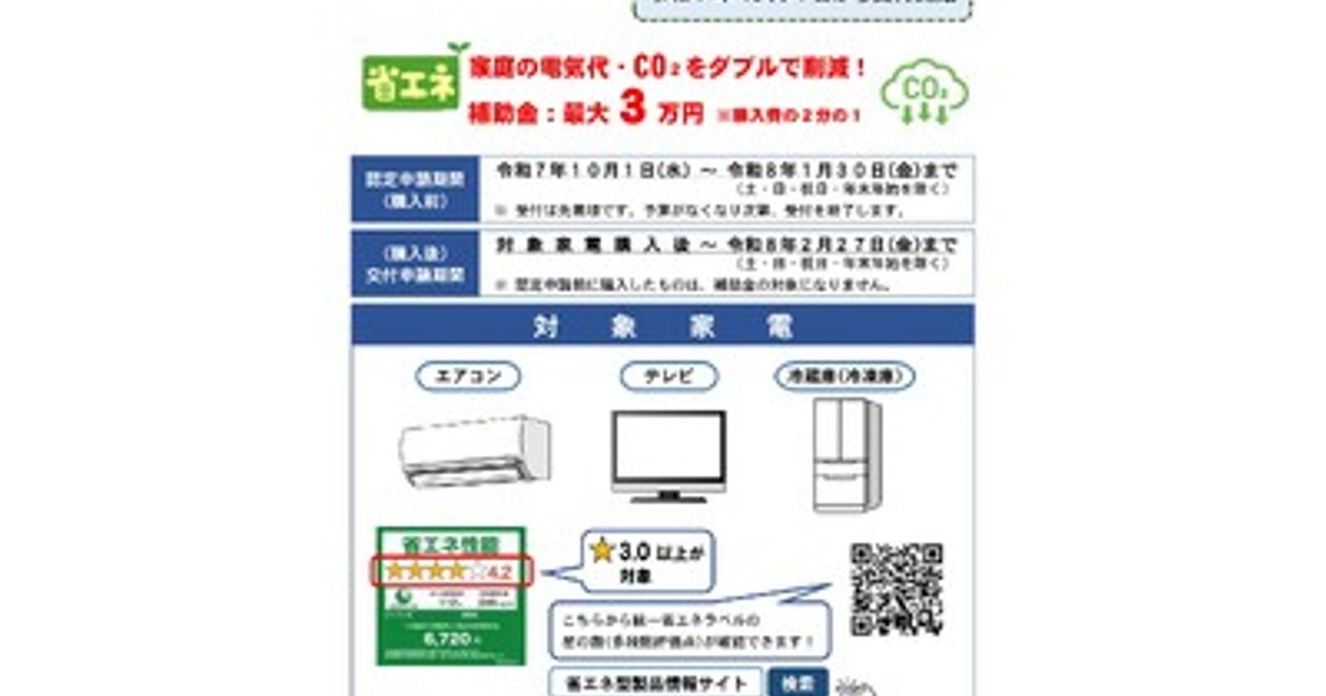 - プレスリリース:大泉町の「省エネ家電購入費補助金」で最大3万円補助!デンキチ パワーモール ...