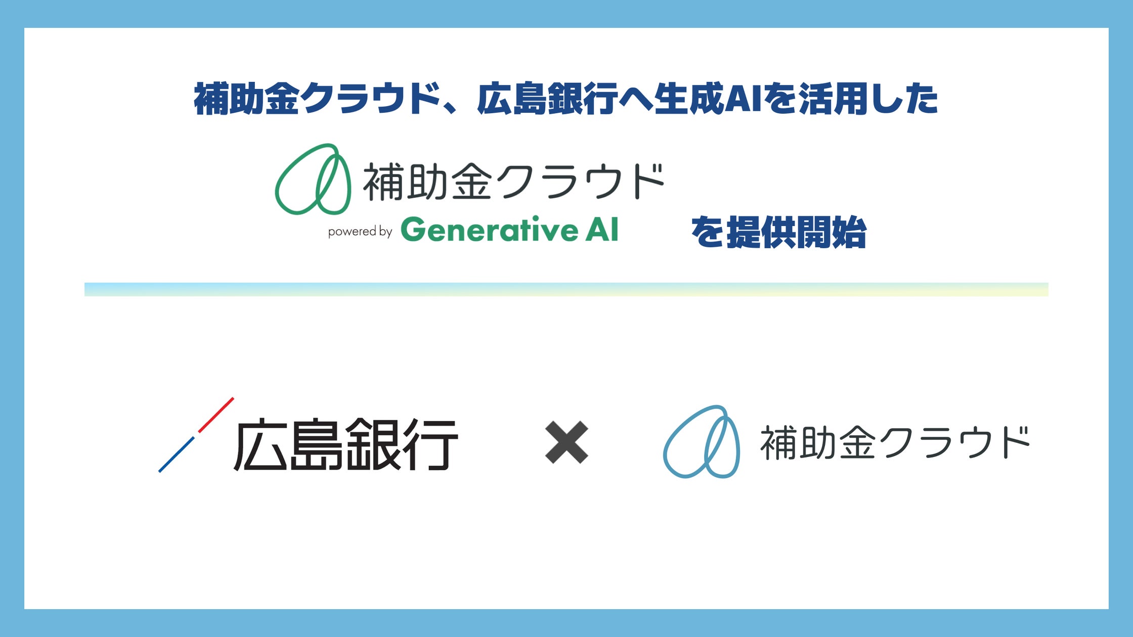 - 広島銀行へ生成AIを活用した「補助金クラウド powered by Generative AI」を提供開始