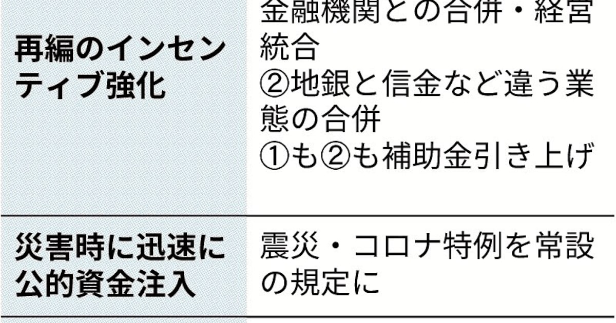 金融庁は地域金融機関の持続可能性を高めるため、合併の際の補助金や災害時の対応を手厚くする。金融機関の再編に伴う初期コストを補助する制度で、地方銀行 …