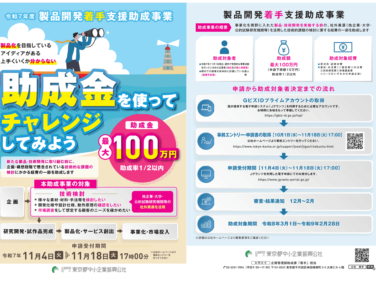 - 東京都の製品開発着手支援助成事業、2025年11月4日から申請受付開始 | ツギノジダイ