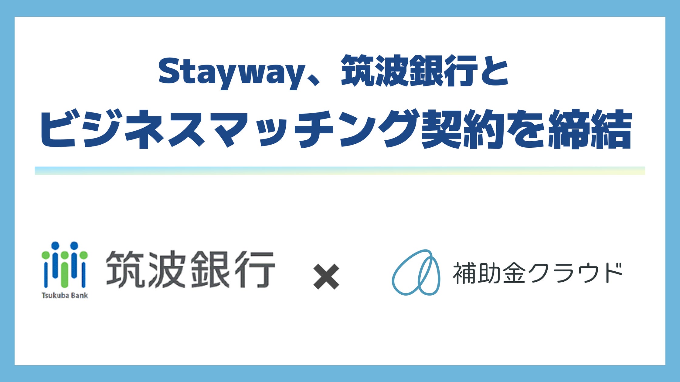 - 補助金クラウドを運営するStayway、筑波銀行と県内金融機関初となるビジネスマッチング契約を ...