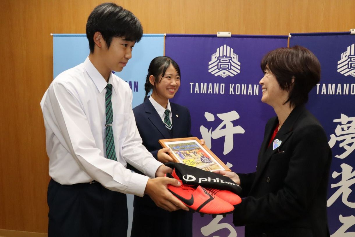 玉野光南高(玉野市東七区)で、カンボジアの子どもに届けるため生徒が学校祭で集めたスポーツ用品の寄贈式が行われ、同国で教育支援に取り組むNPO法人 …