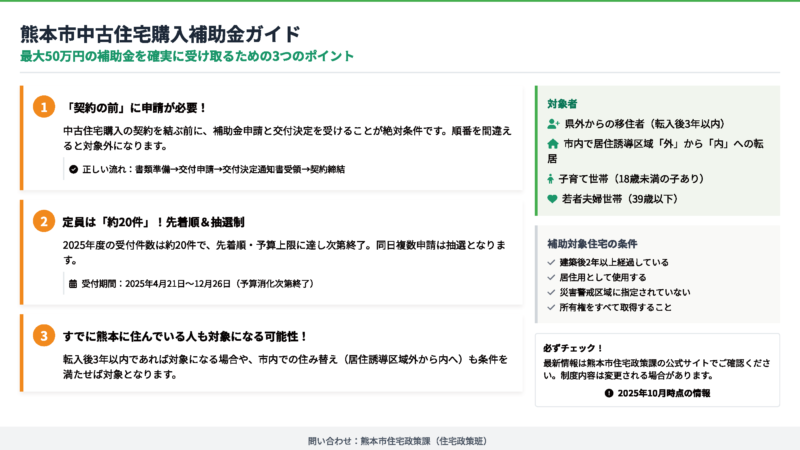 - 【熊本移住者必見】中古住宅補助金で最大50万円!申請前に知るべき3つの注意点