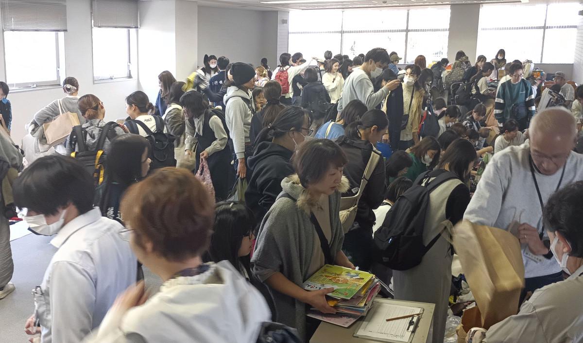 主催はNPO法人「こそだて支援comono」と狭山市。(狭山経済新聞) 開始20分前から長い行列 同イベントは、思い出が詰まった子ども用品を譲れる場を作ること …