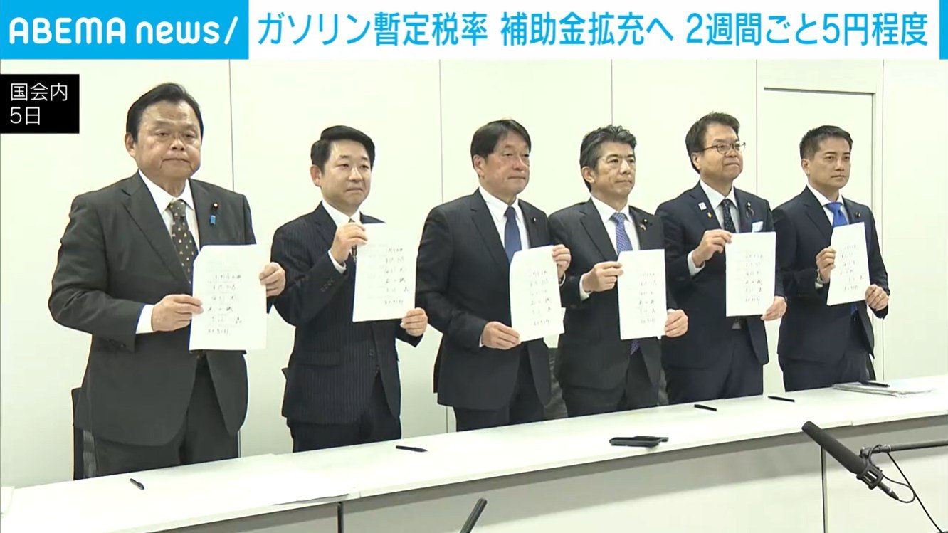 - ガソリン暫定税率 補助金拡充へ 2週間ごと5円程度(ABEMA TIMES) - Yahoo!ニュース