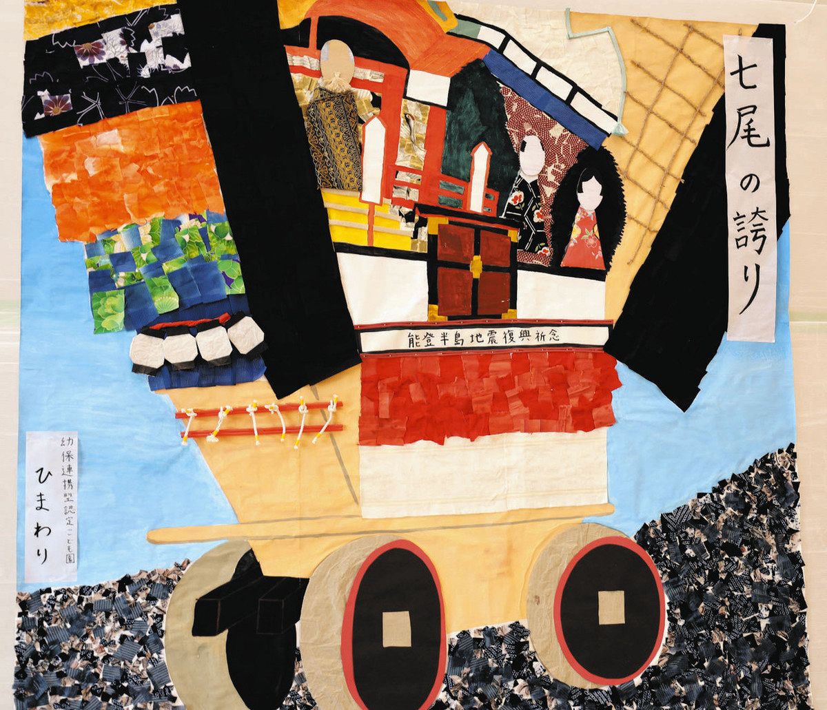 七尾市千野町の認定こども園「ひまわり」の園児が、能登半島地震と豪雨の被災者から寄付された着物の端切れを使って、同市の伝統行事「青柏祭の...