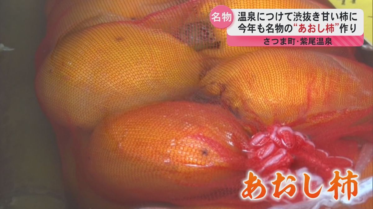 11日の県内は、伊佐市大口で最低気温が6.5℃と、徐々に冬の訪れを感じるようになりました。冷え込んでくると入りたくなるのが温泉ですが、こちら、気持ちよさそうに温泉に浮かんでいるのは柿です。2025年も、さつま町の紫尾温泉で名物の「あおし柿」づくりが行われています。
