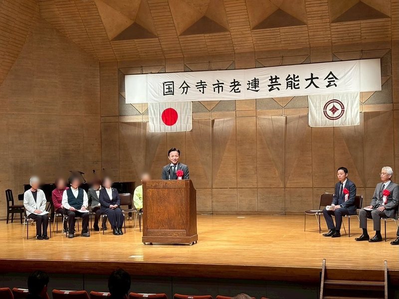 #国分寺市老人クラブ連合会 芸能大会に共催者として出席挨拶させていただきました。日頃から健康づくりやボランティア活動等、高齢者の皆さまの活力増進に向け取組んでいただき、市の施策にもご協力いただいている市老連の皆様。これからも市として様々に皆さんに活用いただける各施策推進に取組みます。#丸山哲平#国分寺市長#国分寺 #国分寺市