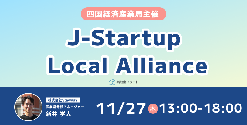 - 11月27日(木)四国経済産業局主催ピッチイベント「J-Startup Local Alliance」に補助金クラウドが ...