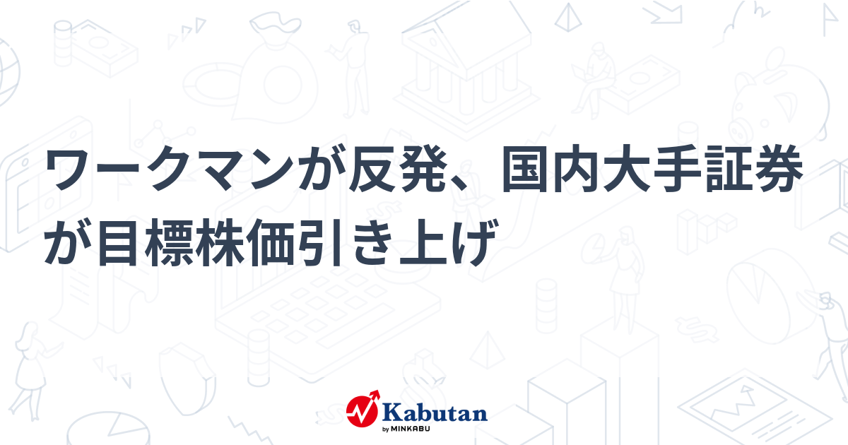 - 【材料】ワークマンが反発、国内大手証券が目標株価引き上げ - 株探(かぶたん)