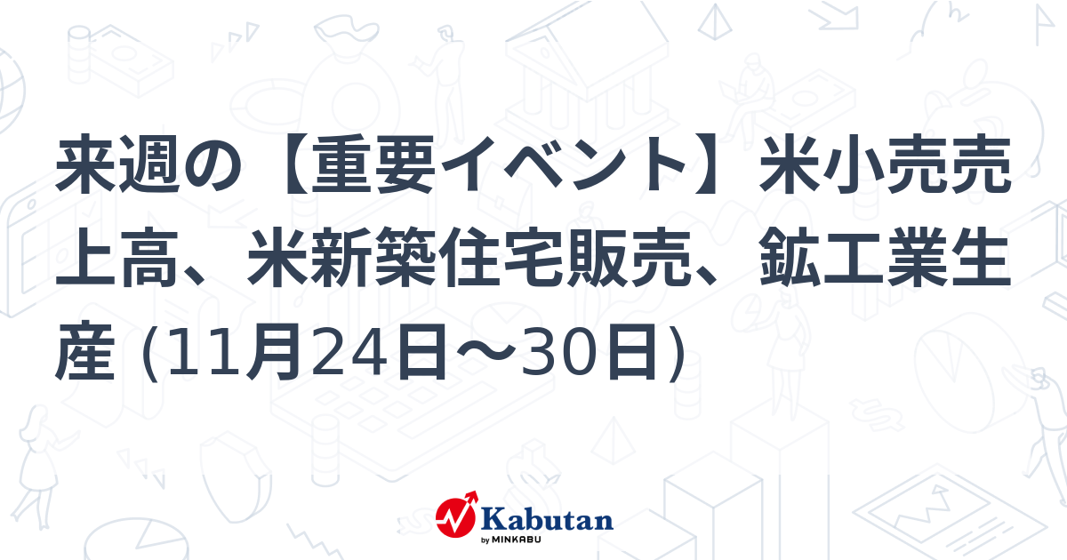 - 来週の【重要イベント】米小売売上高、米新築住宅販売、鉱工業生産 (11月24日~30日) | 市況