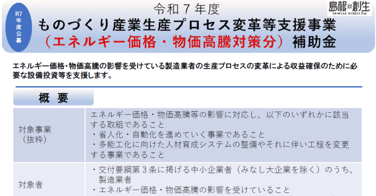 89. 12/5「ものづくり産業生産プロセス変革等支援事業補助金 第3回」(島根県)|Dyresti - note