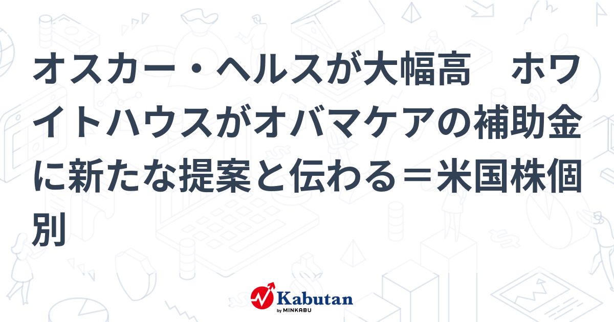 24. オスカー・ヘルスが大幅高 ホワイトハウスがオバマケアの補助金に新たな提案と伝わる=米国株 ...