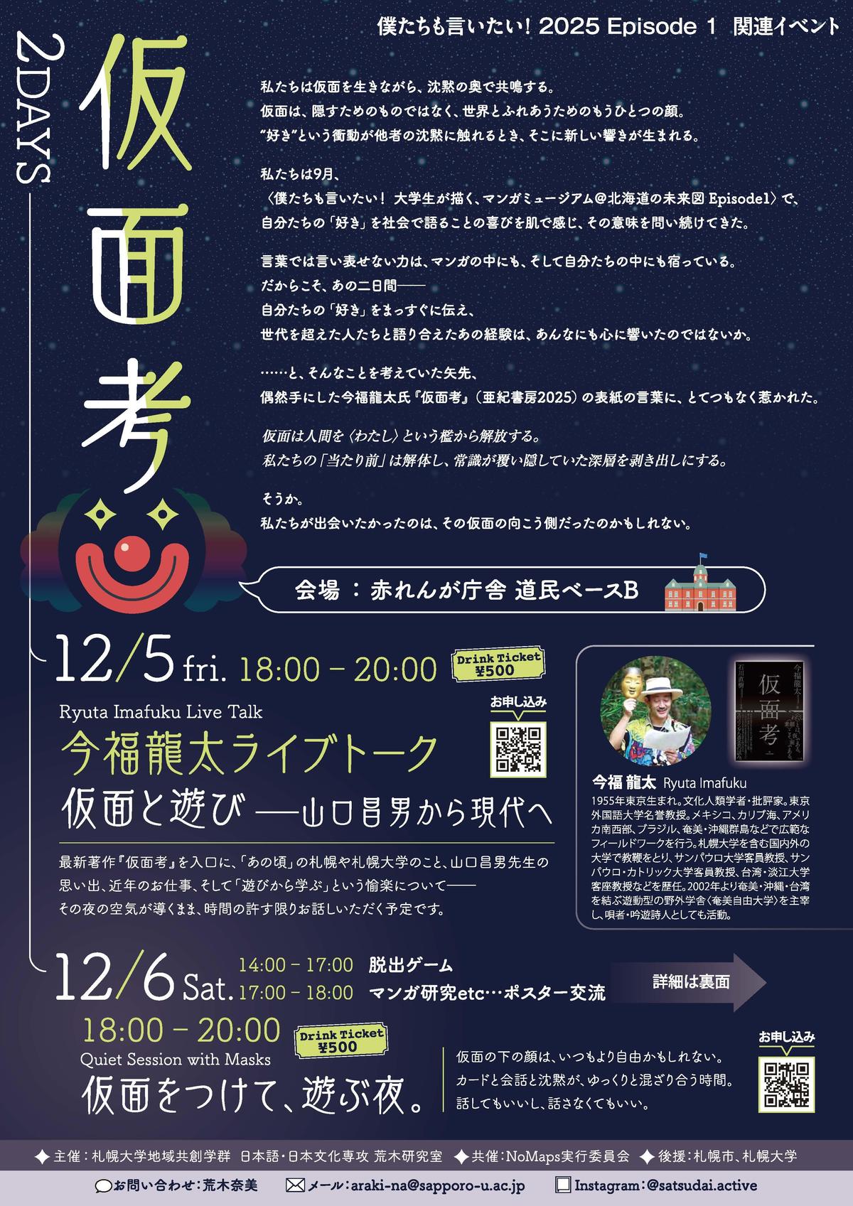 - 「仮面」をテーマにしたイベントを12月に開催します〈大学生が描くマンガミュージアム@北海道 ...