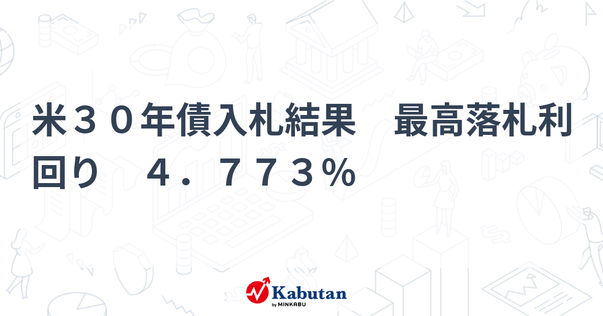 - 米30年債入札結果 最高落札利回り 4.773% | 注目株 - 株探ニュース