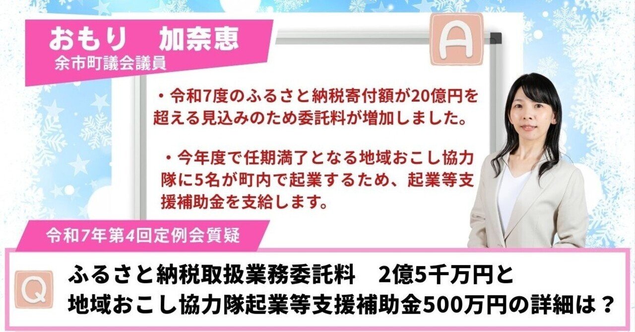 令和7年12月9日~11日に開催された、余市町議会議第4回定例会での質問と答弁をまとめてみました。 ※正式な会議録は、3か月後に図書館と余市町議会Webサイトに …