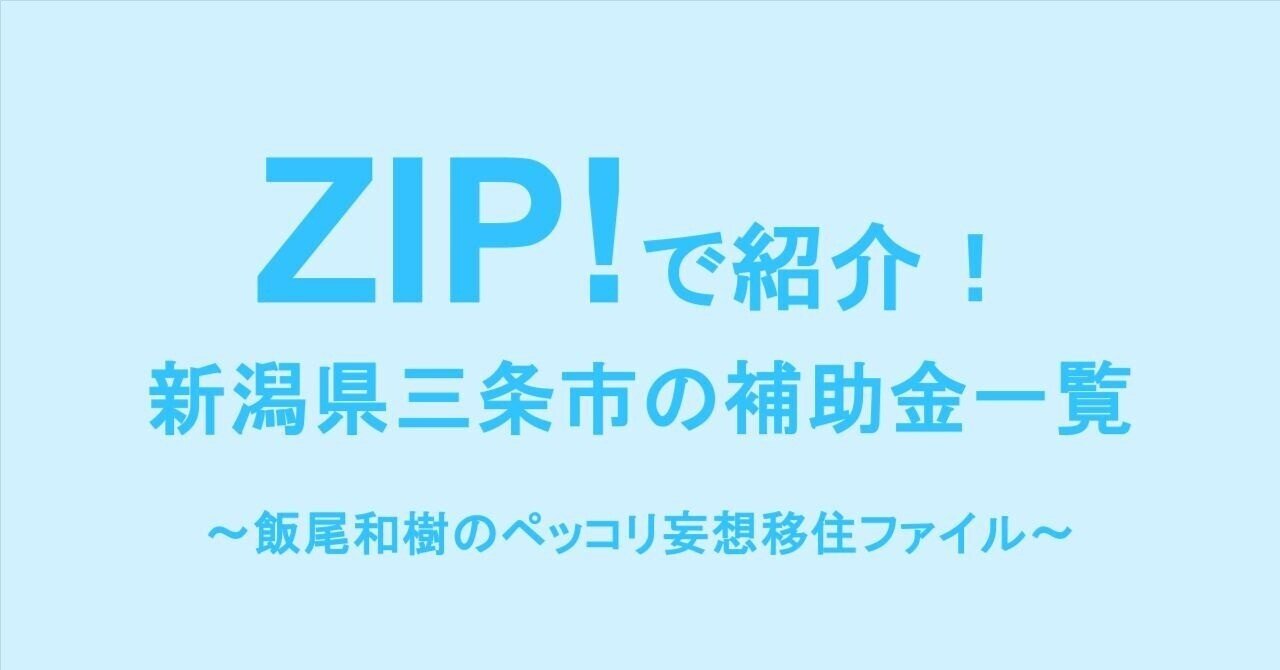 - 【ZIP!で紹介】新潟県三条市の補助金まとめ|飯尾和樹のペッコリ妄想移住ファイル