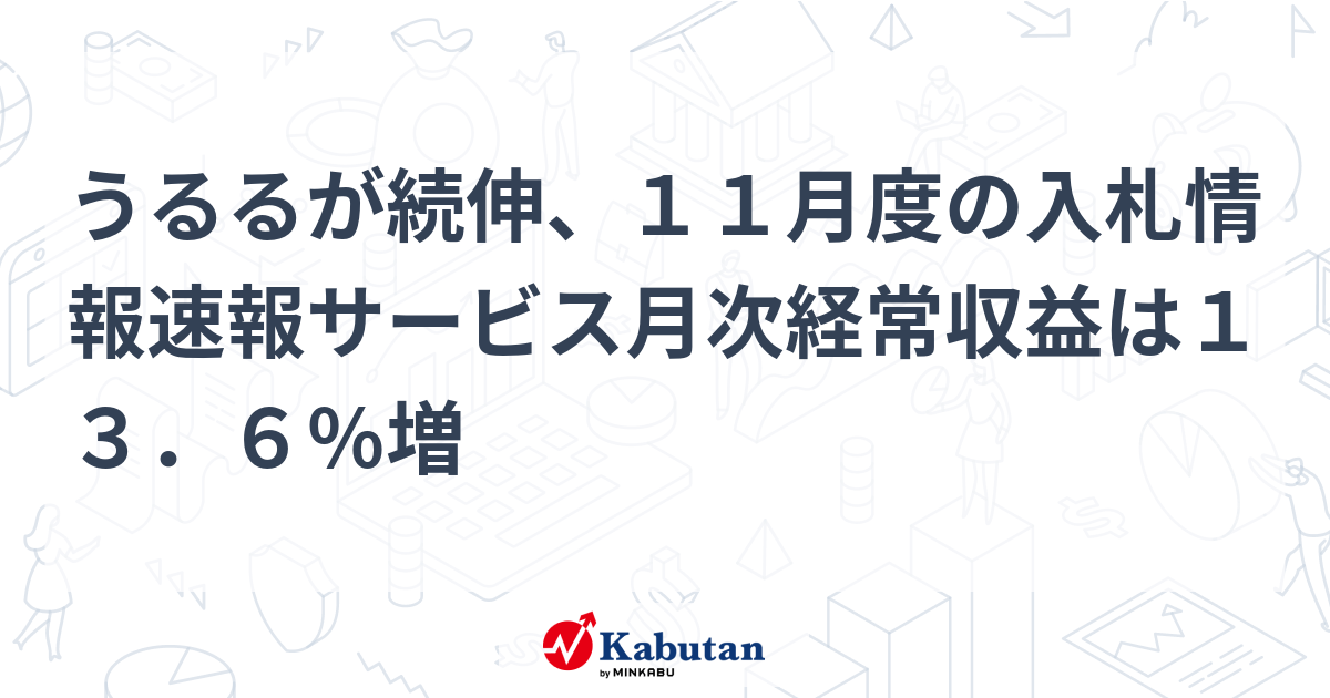 - うるるが続伸、11月度の入札情報速報サービス月次経常収益は13.6%増 - みんかぶ