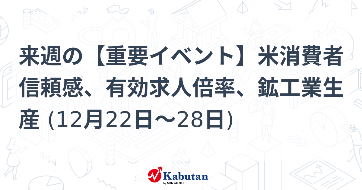 - 【市況】来週の【重要イベント】米消費者信頼感、有効求人倍率、鉱工業生産 (12月22日~28日)