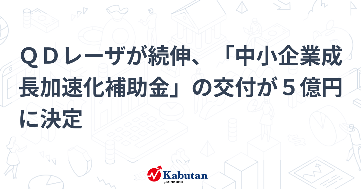 - QDレーザが続伸、「中小企業成長加速化補助金」の交付が5億円に決定