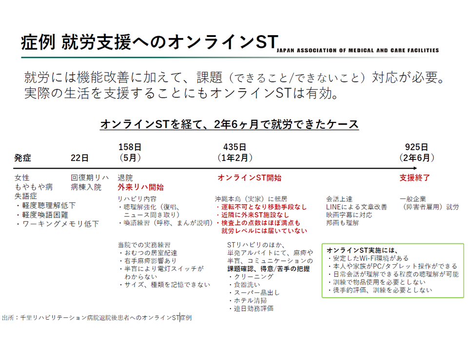 - 「オンライン言語聴覚療法」を保険適用することで、長期間のリハビリ支援・ST偏在対策などが ...